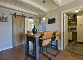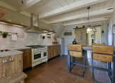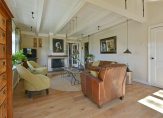 Via een charmante houten staldeur bereik je de landelijke woonkeuken met granieten aanrechtblad en een stijlvol Fratelli gasfornuis met oven. De keuken is verder uitgerust met een afzuigkap, vaatwasser en koelkast met vriesvak.