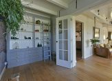 De sfeervolle woonkamer aan de voorzijde heeft een warme houten vloer, een open haard met een prachtige schouw en zicht op het water en de sluis – een plek om echt tot rust te komen. Aangrenzend vind je een zijkamer die met openslaande deuren is af te sluiten. Perfect als thuiskantoor of speelhoek voor de kinderen.