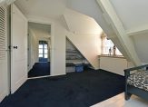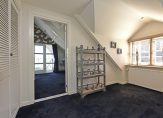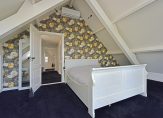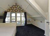 De master bedroom aan de achterzijde beschikt over openslaande deuren naar het balkon en heeft bergruimte onder de knieschotten.