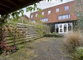 • Diepe tuin op het noorden met houten berging, overkapping en achterom
