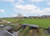 De diepe achtertuin, gelegen op het noorden, heeft een lengte van ongeveer 10 meter en beschikt over een houten berging met een sfeervolle overkapping. Aan de achterzijde is een extra overdekte ruimte gecreëerd, ideaal voor het droog stallen van containers of hout. Via de poortdeur achter in de tuin heeft u toegang tot een achterom, met uitzicht op de dijk waar geregeld schapen grazen.