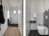 Op de eerste verdieping liggen drie keurige slaapkamers, allemaal netjes afgewerkt en prettig licht. De moderne badkamer is voorzien van een inloopdouche, wastafel en tweede toilet. Ook hier geniet je van het comfort van vloerverwarming.