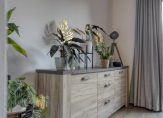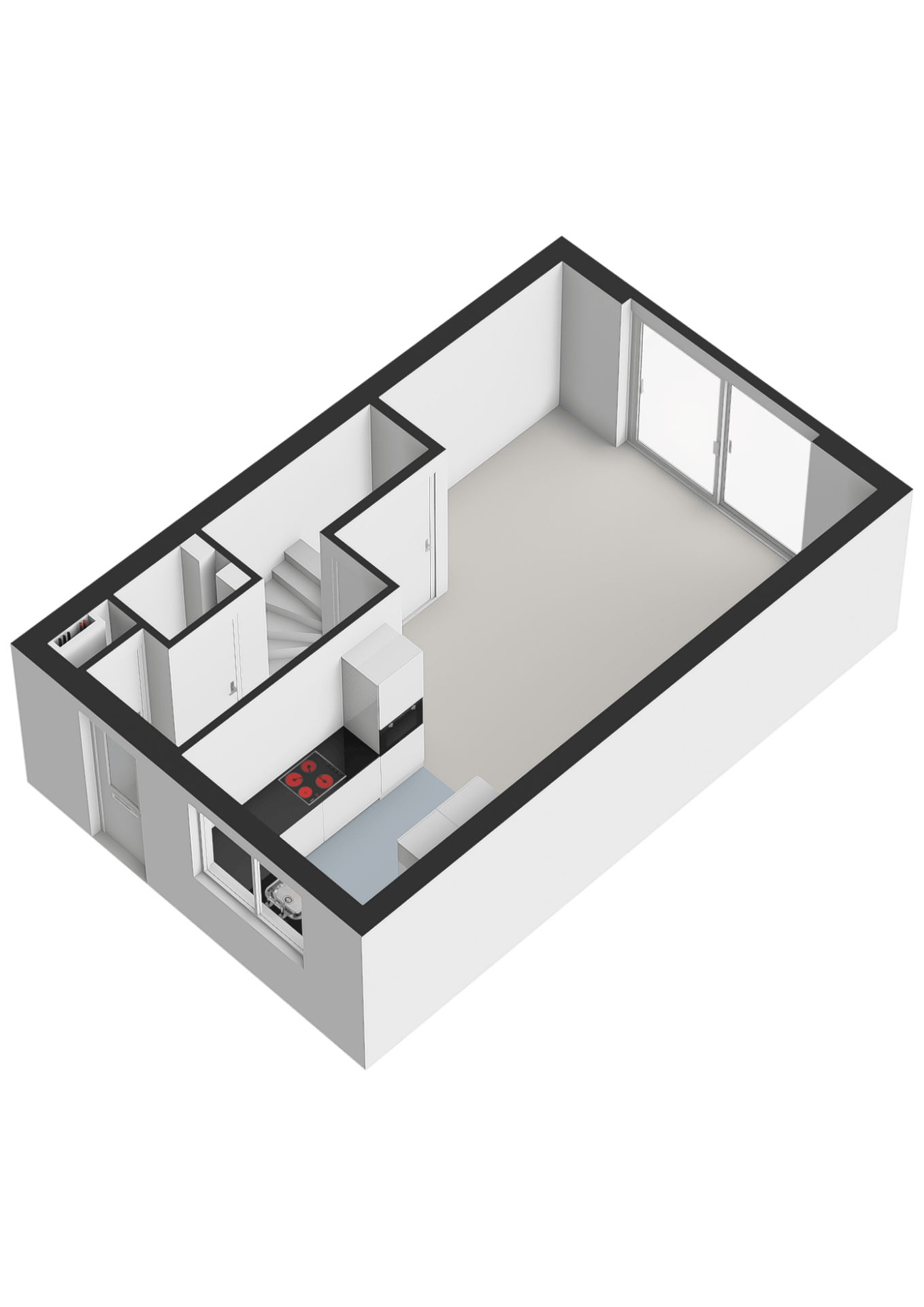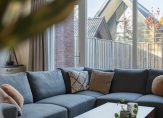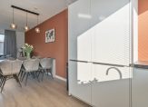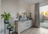 Aan de voorzijde ligt de moderne keuken, uiteraard van alle gemakken voorzien. Een lichte plek waar je uitkijkt over het hofje. De woonkamer voelt warm en uitnodigend, met genoeg ruimte voor een gezellige zithoek en ruime tafel.
