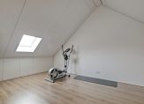 De ruime zolder is bereikbaar via een vaste trap en biedt volop mogelijkheden. Hier vind je de aansluitingen voor de wasmachine, extra bergruimte achter de knieschotten en de technische installaties. De ruimte leent zich uitstekend als werkplek, hobbykamer of eventueel extra slaapkamer.