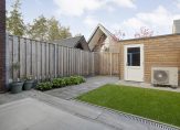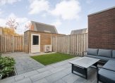 De achtertuin ligt op het noorden en is onderhoudsvriendelijk aangelegd. Dankzij de open ligging blijft deze tuin verrassend licht. Achterin staat een houten berging en de achterom maakt het eenvoudig om met de fiets in en uit te lopen. Voor de woning ligt een rustig hofje met voldoende parkeergelegenheid.