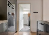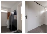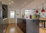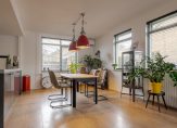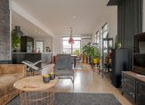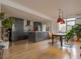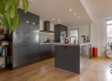 De open keuken is recent vernieuwd en uitgevoerd met moderne inbouwapparatuur. Vanuit de woonkamer heb je zicht op de achtertuin, waardoor binnen en buiten prettig in elkaar overlopen. Aan de achterzijde bevindt zich een praktische bijkeuken met witgoedaansluitingen en de cv-opstelling.