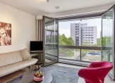 De woonkamer/keuken heeft veel lichtinval en een buitengewoon groen uitzicht. In het gehele appartement ligt een fraaie en moderne onderhoudsvriendelijke PVC vloer.