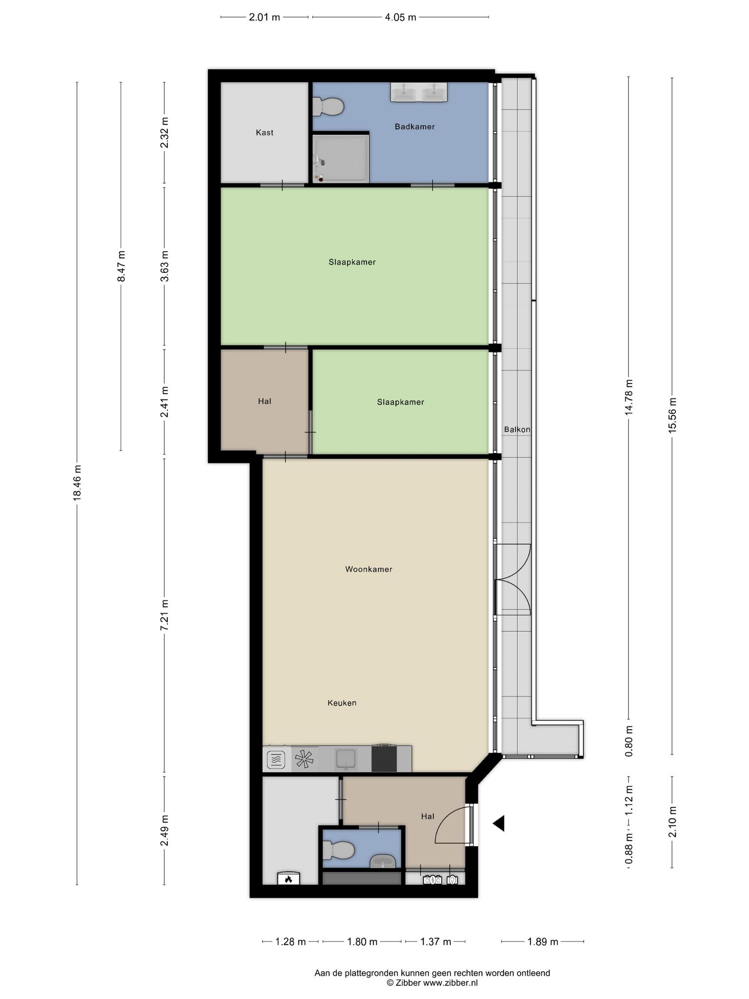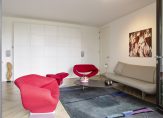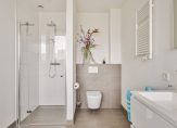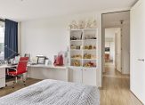 Is er een nadeel te noemen ? Wellicht…. Er is weliswaar een lang maar smal balkon over de gehele lengte van het appartement aanwezig dat toegankelijk is via de openslaande dubbele deuren vanuit de woonkamer. Voor de één een minpunt, voor de ander geen punt….