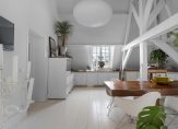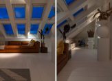 Binnen is elk detail doordacht. Hoogwaardige materialen, slimme indeling, en een sfeer die tegelijk stijlvol en warm is. Grote ramen zorgen voor een constante verbinding tussen binnen en buiten. En ’s avonds? Dan wordt dit penthouse pas écht magisch