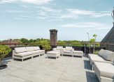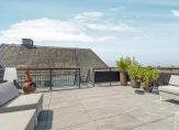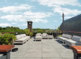 Het ruime dakterras is een plek op zich. Denk aan: loungen met een goed glas wijn, een diner bij zonsondergang, of simpelweg de stilte ervaren terwijl de stad langzaam in slaap valt. Met strategisch geplaatste verlichting en groen, voelt het als een privéresort — maar dan op uw eigen dak.