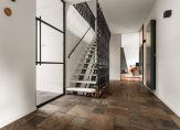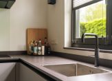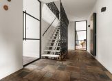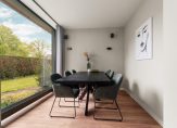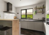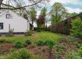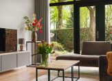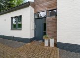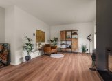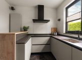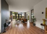 Entree / vestibule met (douche) toilet en stalen deuren naar hal met Noorse lei / L-woonkamer met open haard en openslaande deuren naar tuin / moderne keuken voorzien van alle denkbare inbouw apparatuur o.a. Quooker, stoomoven, vaatwasser, koel-/vriescombinatie en inductie-kookplaat met afzuigkap / twee slaapkamers (voorheen drie) / badkamer met wastafelmeubel, inloopdouche v.v. inbouwkraan /