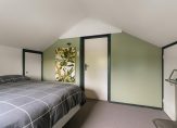 Verdieping: overloop met bergruimte, twee slaapkamers, badkamer met wastafelmeubel, toilet en inloopdouche.