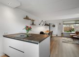 Via de entree met hal, meterkast en toilet bereik je de lichte L-vormige woonkamer. De woonkamer is strak afgewerkt met gestuukte wanden en geniet van veel natuurlijke lichtinval. Aan de voorzijde bevindt zich de luxe open keuken (2023), uitgerust met een BORA inductiekookplaat met geïntegreerde afzuiging, grote koel-/vriescombinatie, oven, vaatwasser en een ruim kookeiland.