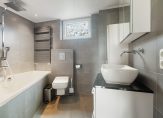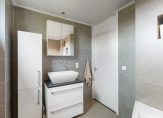 Overloop met toegang tot drie ruime slaapkamers, allen voorzien van een laminaatvloer. De badkamer beschikt over een hoek bad, regendouche, toilet en wastafel. Dankzij de kunststof kozijnen met dubbel glas is ook deze verdieping onderhoudsarm en goed geïsoleerd.