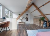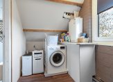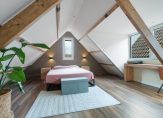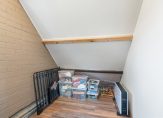 Via de vaste trap bereik je een verrassend royale loftslaapkamer, gekenmerkt door authentieke balken en een lichte dakkapel (2023), wat de ruimte een warm en sfeervol karakter geeft. Daarnaast bevindt zich op deze verdieping een praktische, aparte wasruimte met CV-ketel (2019).
