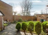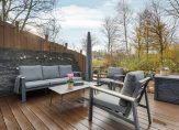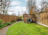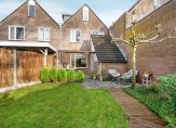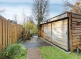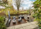 Via de achterdeur kom je in de diepe tuin met twee bergingen, achterom en een gezellig terras boven het water, een heerlijke plek om te ontspannen en te genieten van het uitzicht.