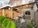 Instapklare geschakelde woning met diepe tuin, twee bergingen en terras aan het water!