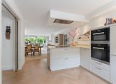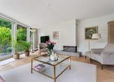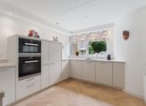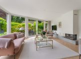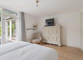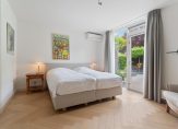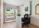 Begane grond: entree / modern toilet met fontein / gang met dubbele schuifdeuren naar riante woonkamer met veel lichtinval, een gashaard en grenzend aan de tuin met veel glas en veel licht / aan de voorzijde is een luxe open hoekkeuken met kookeiland en diverse inbouwapparatuur waaronder twee ovens en een Quooker. Via de hal is het slaapgedeelte te bereiken, bestaande uit een fijne slaapkamer met airco van 15 m2 met toegang naar de badkamer en toegangsdeur naar de tuin. De badkamer is voorzien van een inloopdouche, vaste wastafel met ombouw en een toilet. Aan de voorzijde van de woning is vanuit de hal de bijkeuken met witgoedopstelling en garderobe te bereiken en een doorgang naar een lichte studeerkamer met airco. Aan de achterzijde is een berging (deel van de voormalige garage) met een deur aan de buitenzijde waar u via een poort in de achtertuin op de weg komt. Ideaal voor het veilig stallen van uw fietsen.