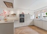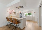 De begane grond (met uitzondering van de wasruimte en de berging) is voorzien van een licht eiken visgraatvloer. Daarnaast is een groot gedeelte van de begane grond ook voorzien van vloerwarming.