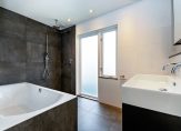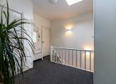 Tweede verdieping: Ruime en lichte overloop met cv-ruimte waar zich tevens de witgoed aansluitingen bevinden, 3 ruime slaapkamers, waarvan één met balkon. Ook is er een ruime luxe badkamer met een groot ligbad, een regendouche, duo wastafelmeubel, toilet en vloerverwarming.