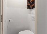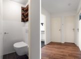 Vanaf de entree kom je binnen in de hal met daar de meterkast, het aparte toilet en alle andere ruimtes. Vanuit de hal is er dus bijna toegang tot alle vertrekken in het appartement.