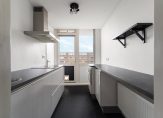 De keuken is voorzien van inbouwapparatuur en ligt aan de hal. Vanuit de keuken is er toegang naar het balkon. Het balkon beschikt over een inbouwkast met daarin de cv-ketel.