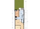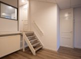 Indeling; Entree/hal met doorloop naar de woonkamer, 2 kamers aan de voorzijde. Via de trap bereik je de achterzijde van het appartement bestaande uit een overloop met open keuken met diverse apparatuur, badkamer met douche, toilet, wastafel en met witgoedaansluitingen, slaapkamer en de toegang tot de ruime achtertuin op het zuiden.