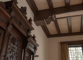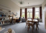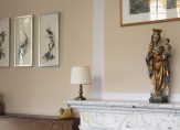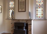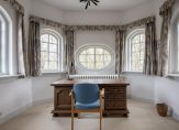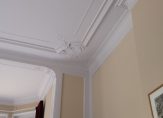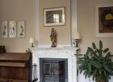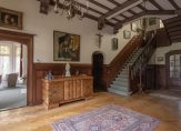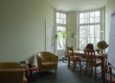 Verder beschikt het pand nog over talloze fantastische elementen uit de bouwperiode zoals terrazzo, paneeldeuren, ionische zuilen, lambrisering met panelen en balklagen, een wit en rood geaderde zwart marmeren schoorsteenmantel waarin twee figuratieve tegeltableaus (Vermeer) in de hal, een bordestrap met bewerkte leuning, een trappenhuisvenster met gekleurd glas-in-lood etc etc etc.