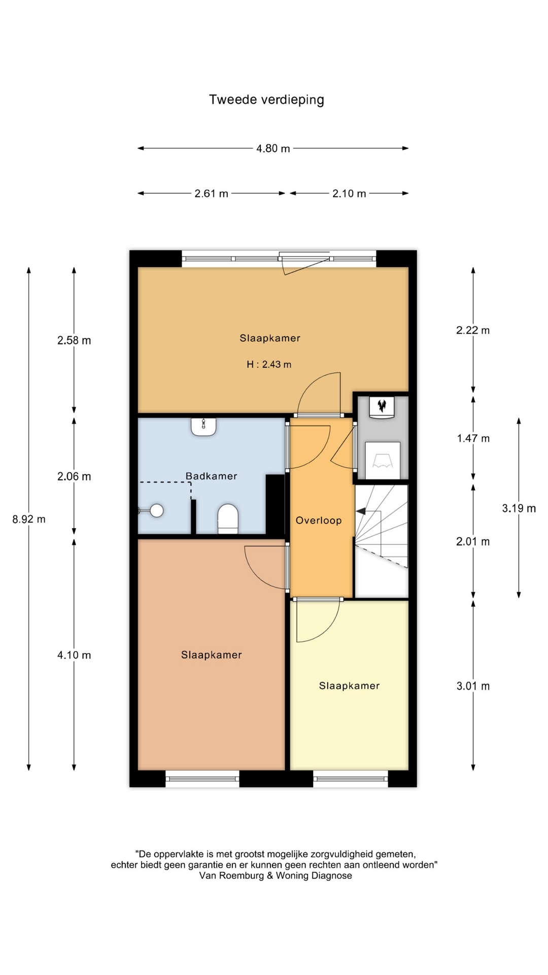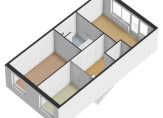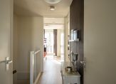 Deze brengt je op een overloop met kast voorzien van aansluitingen witgoed, een badkamer met inloopdouche, toilet en wastafel. Daarnaast zijn er 3 slaapkamers.