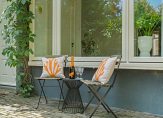 Via de poort aan de voorzijde loop je door de voortuin naar de entree. In de hal vind je de meterkast en heb je toegang tot de sfeervolle, lichte woonkamer en suite. Deze is ingedeeld in een woon- en eetgedeelte, voorzien van meerdere inbouwkasten en een royale erker. Dankzij de hoge raampartijen valt er volop daglicht binnen. De tuin aan de voorzijde wordt omringd door een hoge heg, waardoor je veel privacy hebt.
