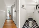 Vanuit de eetkamer bereik je de gang. Hier bevindt zich de dichte keuken met een openslaande deur naar de achtertuin. De keuken is uitgerust met een granito aanrechtblad, gaskookstel, oven, afzuigkap, vaatwasser en koelkast. Aan de andere zijde van de gang vind je de badkamer met inloopdouche en wastafel, en daarnaast een apart toilet.