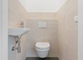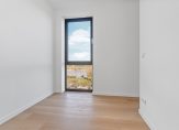 Het appartement beschikt over twee slaapkamers, een apart toilet en een luxe afgewerkte badkamer met hoogwaardige materialen en moderne uitstraling.