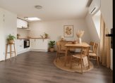 In de woonruimte is een airco-unit aanwezig, ideaal voor zowel de warme zomerdagen als voor efficiënte verwarming in de winter. De nette vloer en het moderne afwerkingsniveau zorgen ervoor dat de studio direct te betrekken is zonder extra werk.