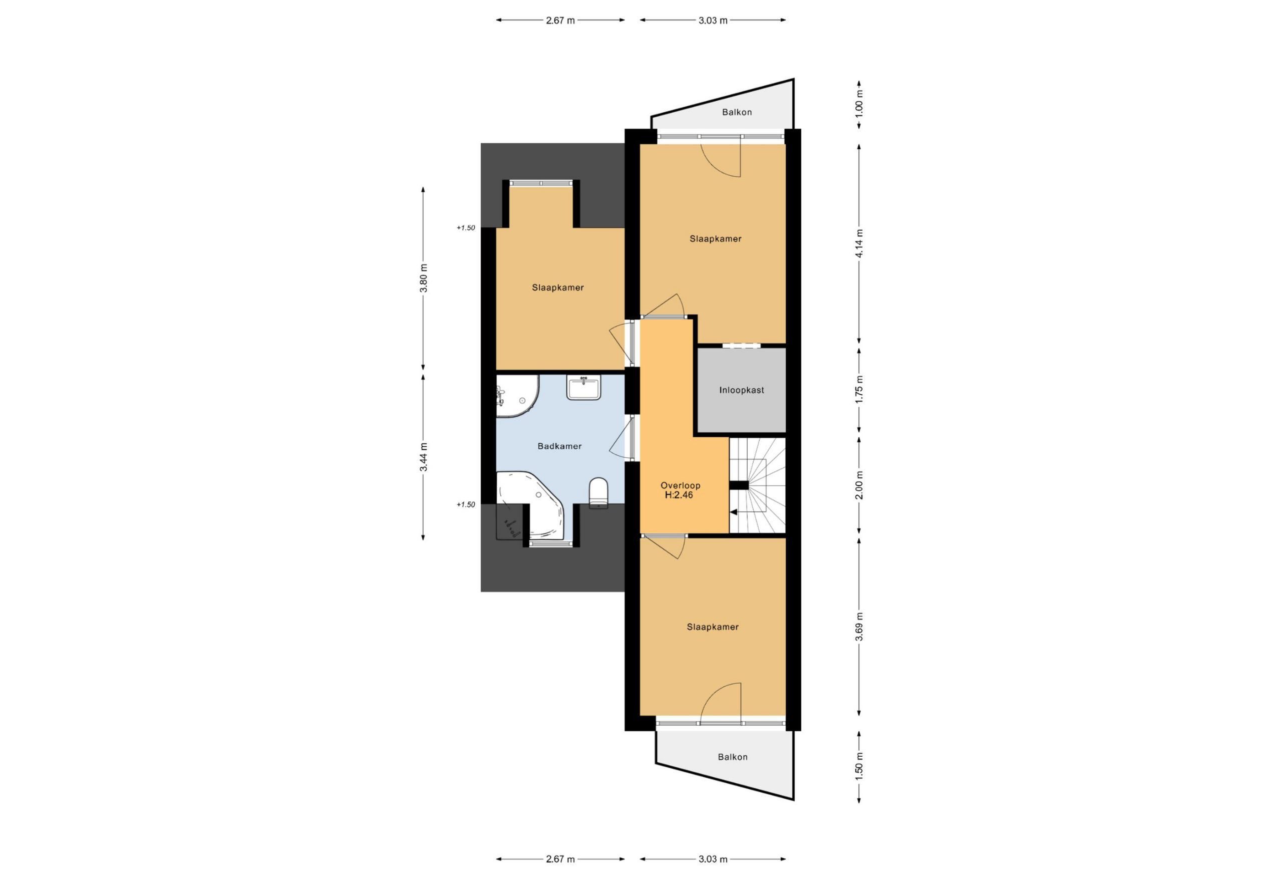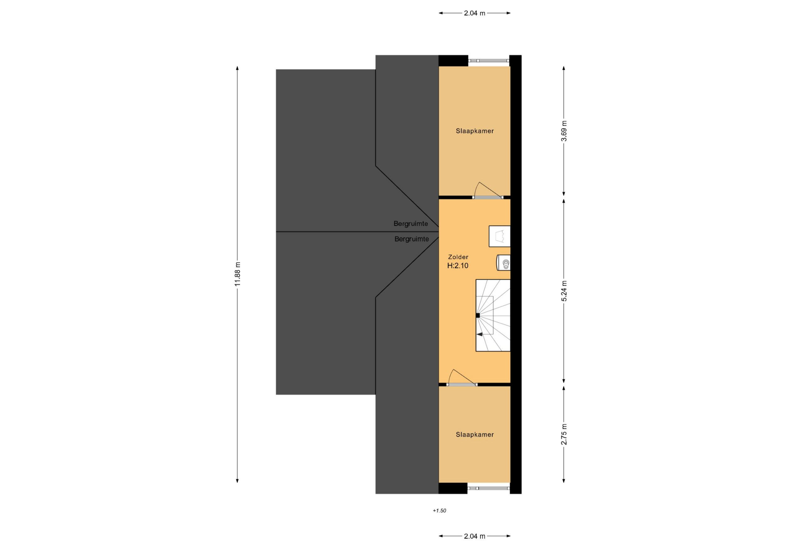 De tweede verdieping is bereikbaar via een vaste trap. Dankzij de dwarskapconstructie biedt deze verdieping verrassend veel ruimte.