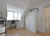 Via de vaste trap kom je op de ruime overloop. Aan de voorzijde bevindt zich een slaapkamer met toegang tot het balkon. De royale badkamer ligt eveneens aan de voorzijde en is voorzien van een ligbad, douche, toilet, handdoekradiator, wastafel én vloerverwarming voor extra comfort.