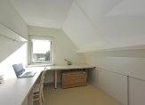 Centraal ligt de overloop met de opstelplaats voor de cv-combiketel en aansluitingen voor de wasmachine en droger. Aan de voorzijde is een fijne werkruimte gerealiseerd; aan de achterzijde vind je nog een extra kamer. De overige open ruimte biedt volop mogelijkheden voor extra bergruimte of een hobbyhoek.