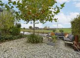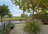 De achtertuin is sfeervol aangelegd en grenst direct aan het water. Aan de steiger kun je een klein bootje aanleggen of gewoon genieten met een hengel in de hand. Vanuit de tuin kijk je uit over de prachtige landerijen – rust, ruimte en natuur komen hier samen.