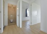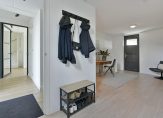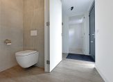 Je komt binnen in een royale hal met meterkast en toegang tot de garage. Hier vind je ook een keurig afgewerkt toilet met vrij hangend closet en fonteintje.