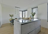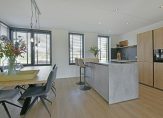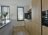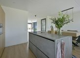 Aan de voorzijde van de woning bevindt zich de moderne woonkeuken met kookeiland. De keuken is voorzien van diverse inbouwapparatuur, waaronder een Quooker-kraan, inductiekookplaat met geïntegreerde afzuiging, combi-magnetron en een koel-vriescombinatie. Je vindt er bovendien volop stopcontacten. Aangrenzend aan de keuken is voldoende ruimte voor een grote eettafel, perfect om met familie en vrienden samen te komen.