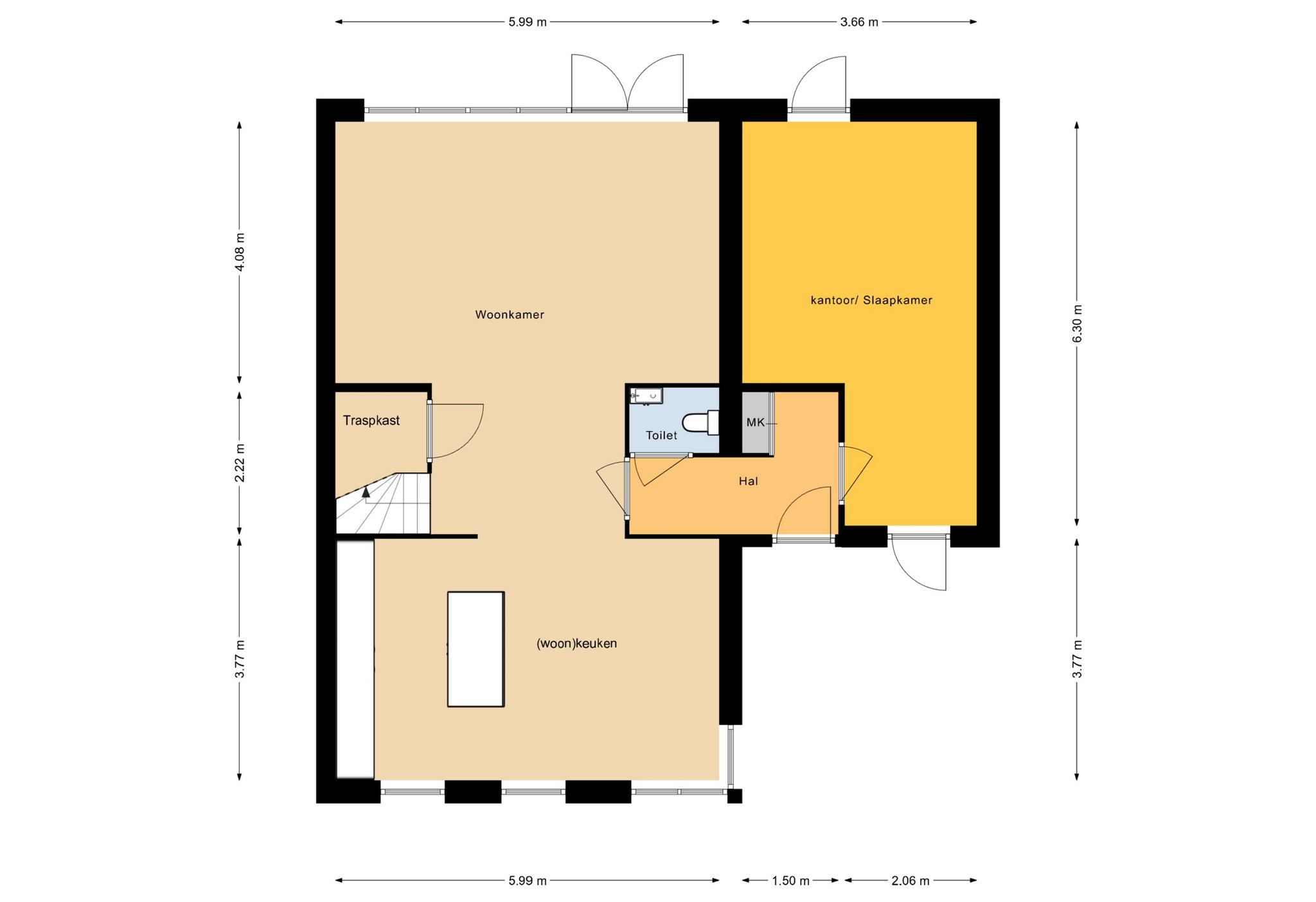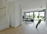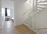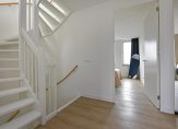 Tussen de woonkeuken en de woonkamer vind je een vaste kast en de trapopgang naar de eerste verdieping.