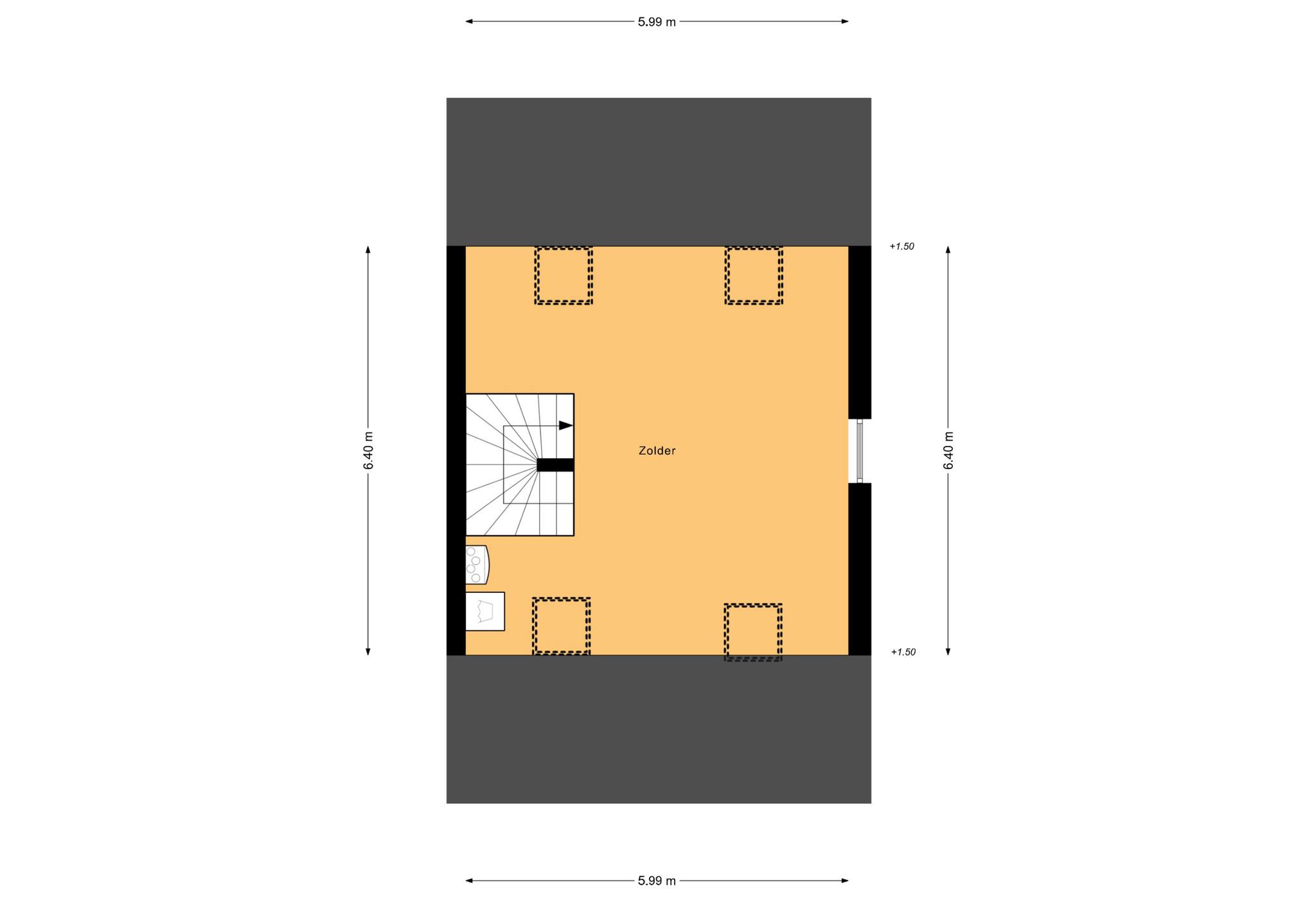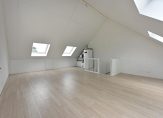 Via een vaste trap bereik je de tweede verdieping. Dankzij het zijraam en meerdere dakramen komt hier veel natuurlijk licht naar binnen. Je vindt hier de opstelling van de warmtepomp, de omvormer van de zonnepanelen en de mechanische ventilatie. De ruimte is nu nog open, maar kan eenvoudig worden ingedeeld in twee extra slaapkamers.
