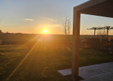 Via de garage of de schuifpui in de woonkamer stap je zo de royale achtertuin in, gelegen op het westen. Hier geniet je van een weids uitzicht over de polder én van de zon die tot laat op de avond blijft schijnen — je ziet de zon hier zelfs prachtig ondergaan. De tuin is voorzien van een stijlvolle overkapping, waardoor je het hele jaar door comfortabel buiten kunt zitten. Daarnaast zijn er praktische extra’s zoals een buitenkraan, een handige achterom en elektrische screens aan de woning.