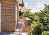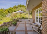 De tuin is werkelijk betoverend. Onder architectuur van Arend Jan van der Horst aangelegd, glooit hij mee met het duinlandschap en biedt een oase van rust en schoonheid. Terrassen, diverse zitplekken, grote bomen, rijkbloeiende borders, een vijver met vlonderterras en sierlijke schelpenpaden zorgen voor een unieke buitenbeleving. Een plek om eindeloos te genieten.
