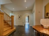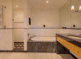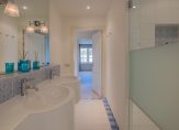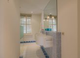 Een fraaie bordestrap leidt naar de eerste verdieping met vier ruime slaapkamers. De hoofdslaapkamer beschikt over een eigen kleedkamer, een luxe badkamer met apart toilet en een groot zonnig balkon. Daarnaast is er een tweede badkamer, een aparte toiletruimte, een praktische wasruimte en volop kastruimte aanwezig.