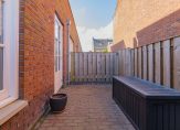 De achtertuin is gelegen op het noordwesten en heeft een achterom. De achtertuin is geheel betegeld en er is een overdekte berging / fietsenstalling gecreëerd.