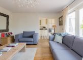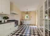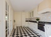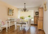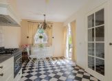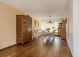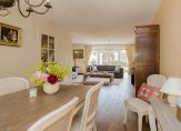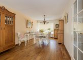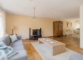 De royale woonkamer is voorzien van een warme houten vloer en biedt volop ruimte voor een gezellige zithoek én een grote eettafel. De landelijke, lichte keuken met inbouwapparatuur sluit hier naadloos op aan – perfect voor wie houdt van koken in een gezellige, praktische ruimte.