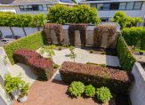 De voortuin en achtertuin zijn fraai aangelegd met een speelse combinatie van grind, sierbestrating, Euonymusboompjes een charmante toog en andere sierbeplanting. De achtertuin heeft een fijn terras waar je kunt ontspannen met een kop koffie of gezellig kunt barbecueën met vrienden. Lekker veel privacy en volop zon.
