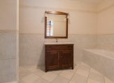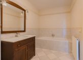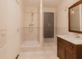 De badkamer is uitgerust met een ligbad, aparte douche en een stijlvol wastafelmeubel.