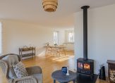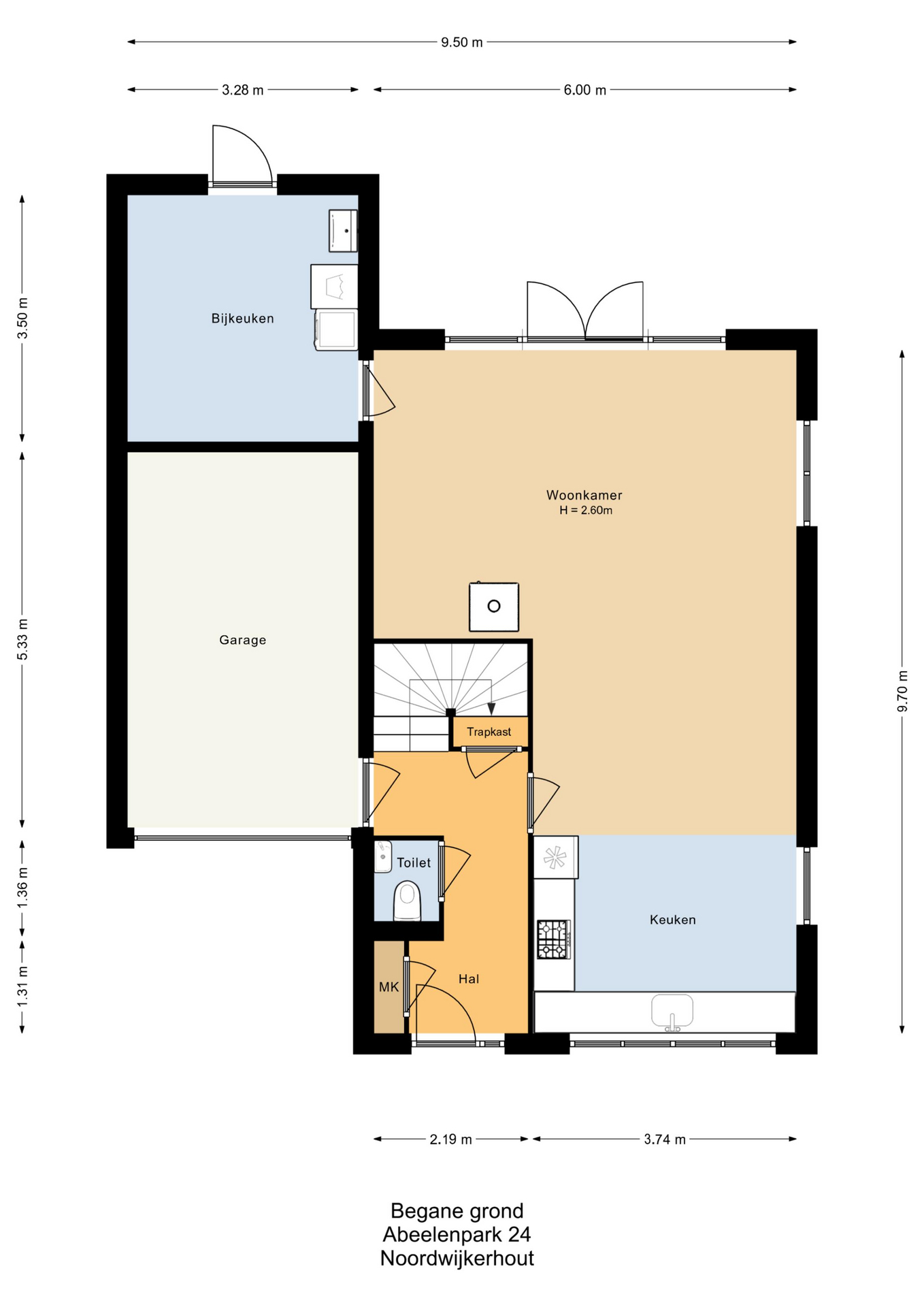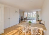 Via de entree stap je binnen in de ruime hal met toilet, meterkast en trap naar boven. De lichte en sfeervolle living heeft een open haard, een open keuken en openslaande deuren naar het terras en de tuin. De moderne keuken in L-opstelling is voorzien van hoogwaardige inbouwapparatuur. De gehele begane grond heeft vloerverwarming voor extra comfort.
