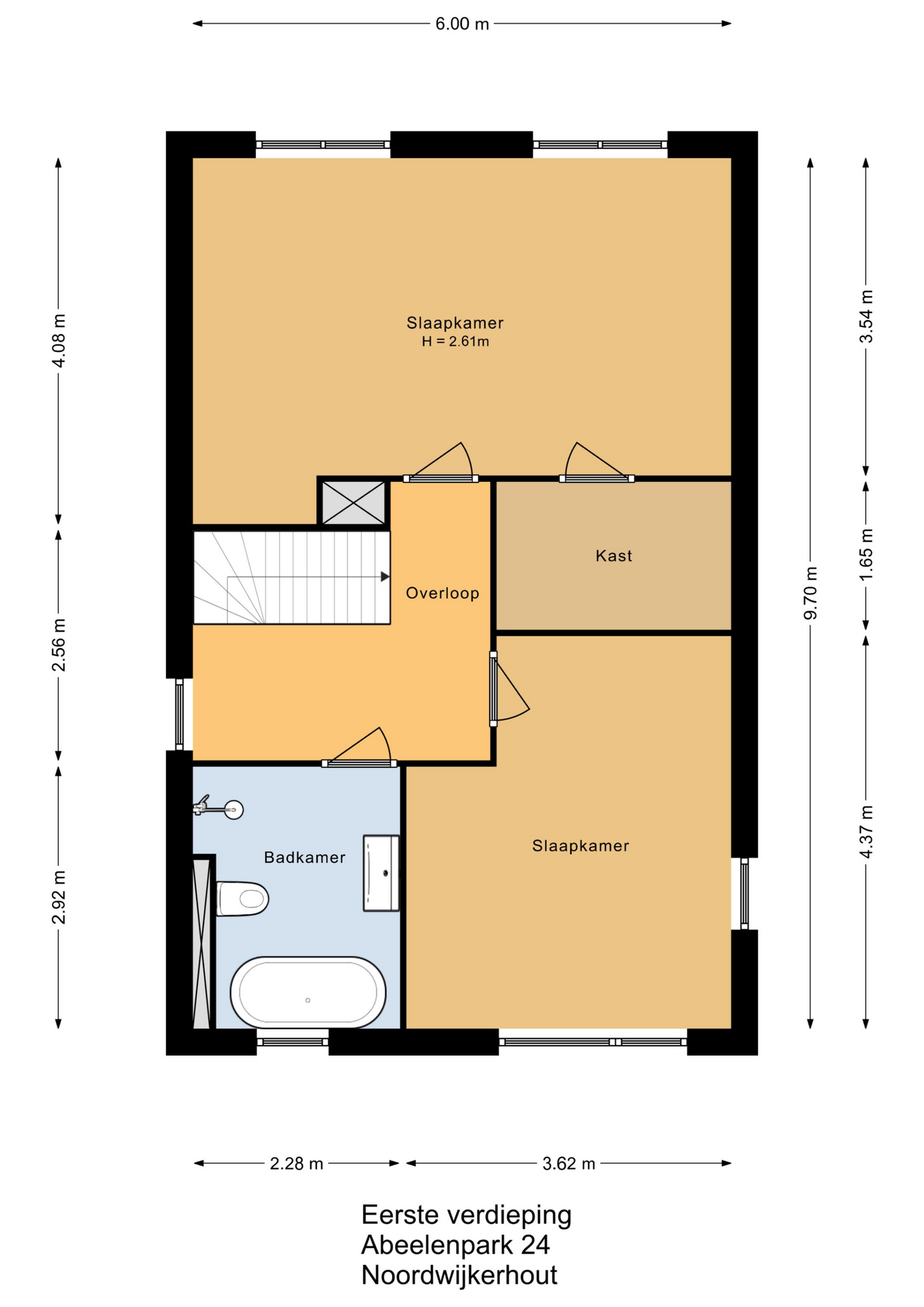 Op de eerste etage vind je twee ruime slaapkamers, waarvan één met een inloopkast. De moderne badkamer is voorzien van vloerverwarming, een ligbad, inloopdouche, toilet en wastafel.